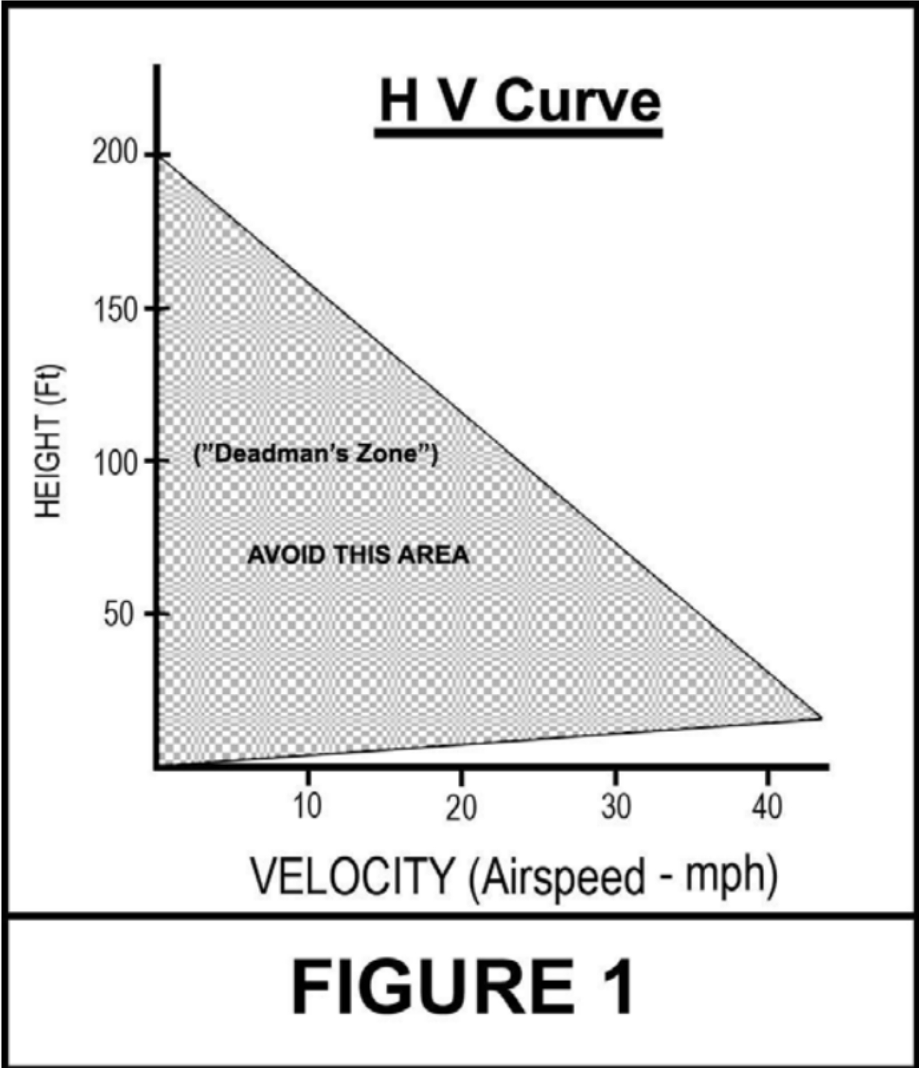 What is the H/V curve and why is it important for rotorcraft – all rotorcraft? The H/V curve is an actual graph (Figure 1) that depicts the minimum combination of height potential energy and speed potential energy required to recover rotor RPM and airspeed to make a safe landing IF the engine is not available – if the engine FALTERS or QUITS! Or more accurately, it depicts the area of flight, combination of height and velocity, that should be avoided. The H/V curve mostly applies if the engine quits or falters. You might not ever get in trouble flying within “Deadman’s Zone,” but should we really take a chance with any engine?